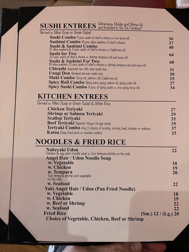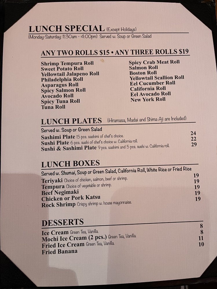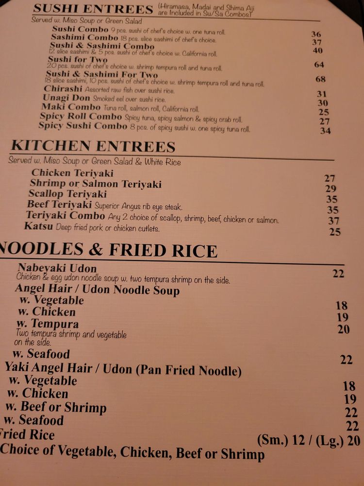 18 slice sashimi, 10 pieces, sushi of chef's choice with shrimp tempura roll and tuna roll