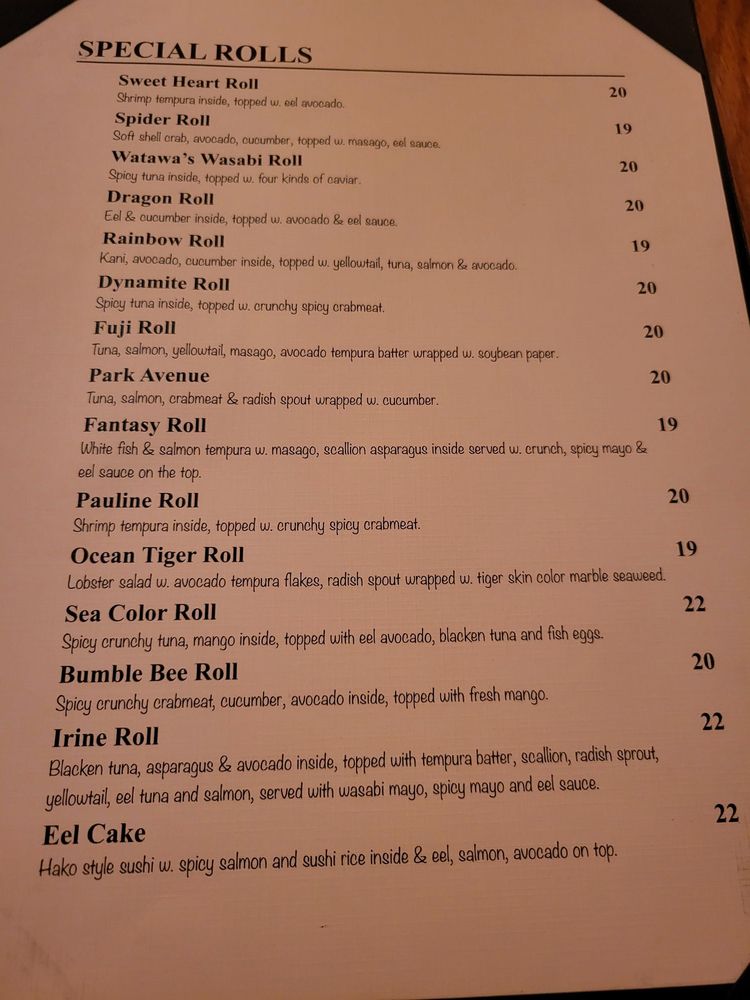 Introducing the menu at Watawa Sushi in Astoria, NY, a trendy and casual spot offering a wide range of cold and hot appetizers, along with noodles and fried rice options. The menu features fresh sashimi appetizers, flavorful tuna tartar, and crispy bites, as well as hot appetizers like grilled squid and Japanese dumplings. For noodle lovers, options include udon soup and fried rice dishes. Customer reviews rave about the quick service, fresh sushi, and delightful lunch specials. Highlights include the Pauline roll, rock shrimp, and the intense wasabi sushi. With a spacious and clean ambiance, Watawa Sushi stands out for its attentive service and delicious food. Make sure to try their signature Dragon Roll for a taste sensation that you won't forget.